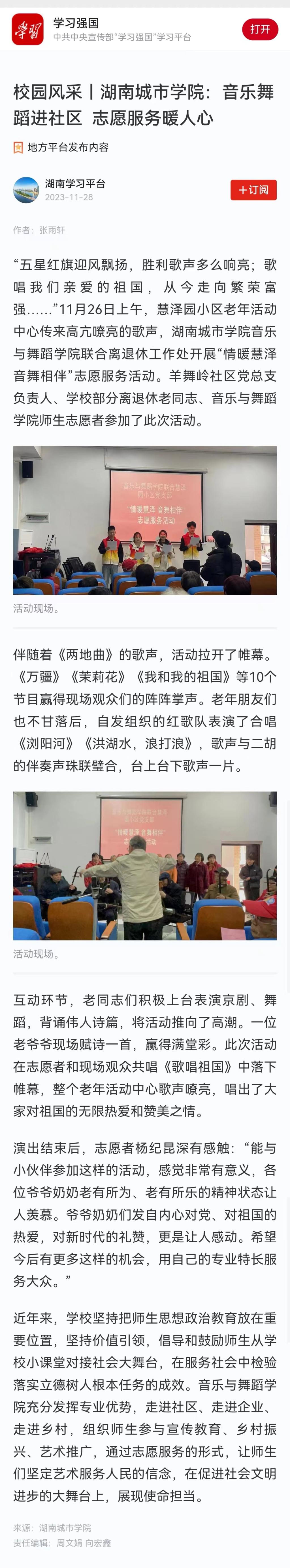 学习强国 | 校园风采丨永利yl:音乐舞蹈进社区 志愿服务暖人心