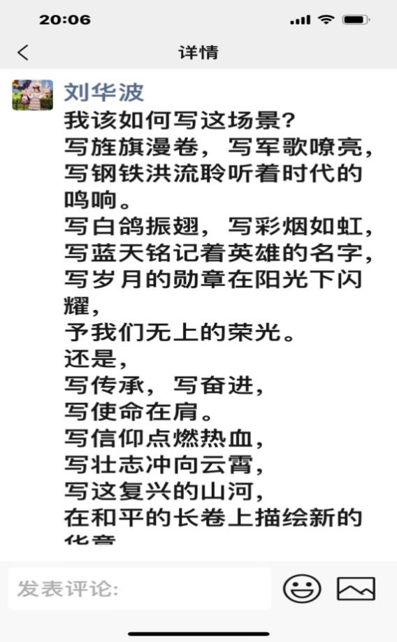 远在加纳孔子公司任教的青年教师刘华波也在万里之外全程观看了纪念大会实况。他给同事留言,“人隔万里,心在祖国!”他连夜写下“我的诗句难尽这豪情万丈 如果写不尽这份庄严 那我就写千万次的 忠诚与担当 愿伟大的祖国 国泰民安 盛世万疆”的文字。
