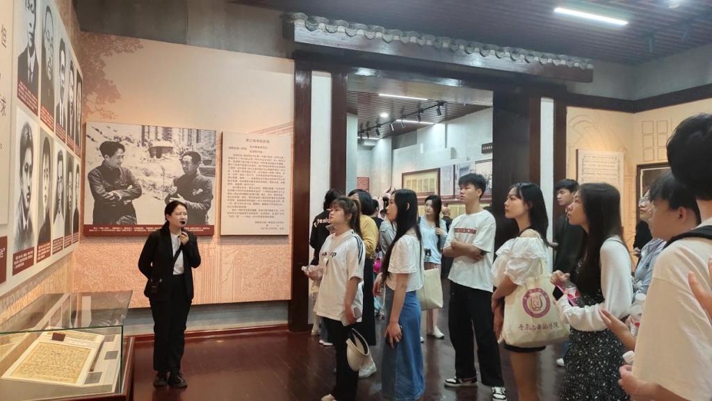 随后,众人来到湖南第一师范,讲解员介绍,这里是一代伟人毛泽东当年学习、工作的地方,是湖湘文化的重要发祥地,也是中国现代师范教育先行地,享有“千年学府、百年师范”的美誉。在讲解员的引导下,师生参观了大礼堂、城南古井、阅报室等纪念点,深入了解了青年毛泽东在此期间立下“改造中国与世界”的宏伟志向,并从事建党建团等早期革命活动的光辉历程和家国情怀。