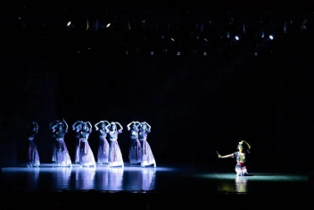细长的峨眉,明丽的腮红和唇色,长及脚踝的裙裾……两位可爱 又娴静的仕女仿佛从画卷中走出,浓厚的古风气息扑面而来。通过双人舞的方式建立起一个鲜活的汉代舞俑的“活”的意象, 在历史的身体与当代性之间做了一个链接,宛如舞俑复生,一场重访历史的奇趣体验古典与当代、音乐与肢体、光影与舞者,相辅相成又奇妙碰撞,是古典汉唐舞的当代复兴之作