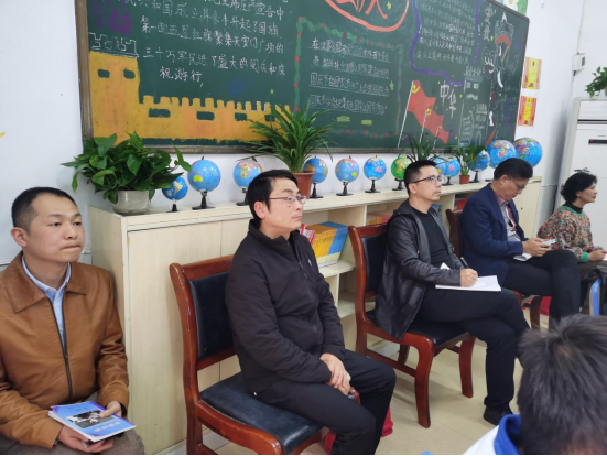 之后,各位领导及实习教师们一起前往教学楼教室看实习教师向婷婷的音乐课。