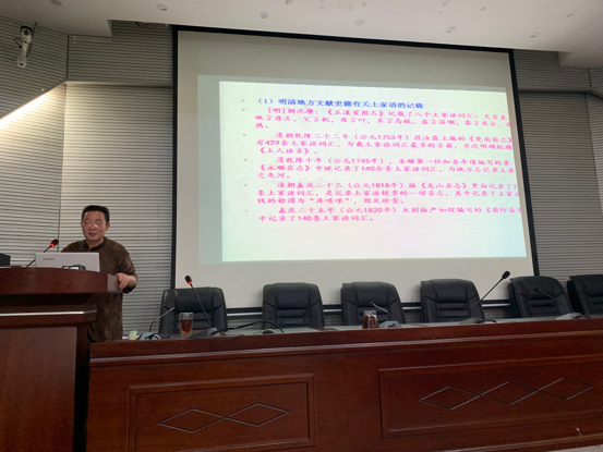 报告会上,陈廷亮教授结合自身的实践经验和研究成果,理论联系实际,比较系统地讲述了非物质文化遗产的概念、国家级非遗名录的分类、少数民族艺术文化遗产传承与创新存在的问题及抢救性对策和土家族语言的历史变迁等系列问题进行了深入浅出的分析。最后龙湘平经理对陈廷亮教授的学术报告作了总结,在场的老师和员工认真学习讲座内容,进一步开阔了学术视野。