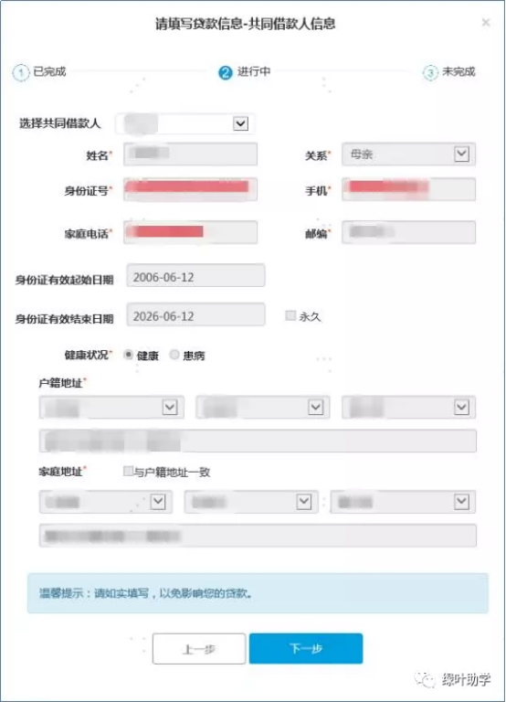 6、填写共同借款人信息后,点击“下一步”对贷款资料进行确认。