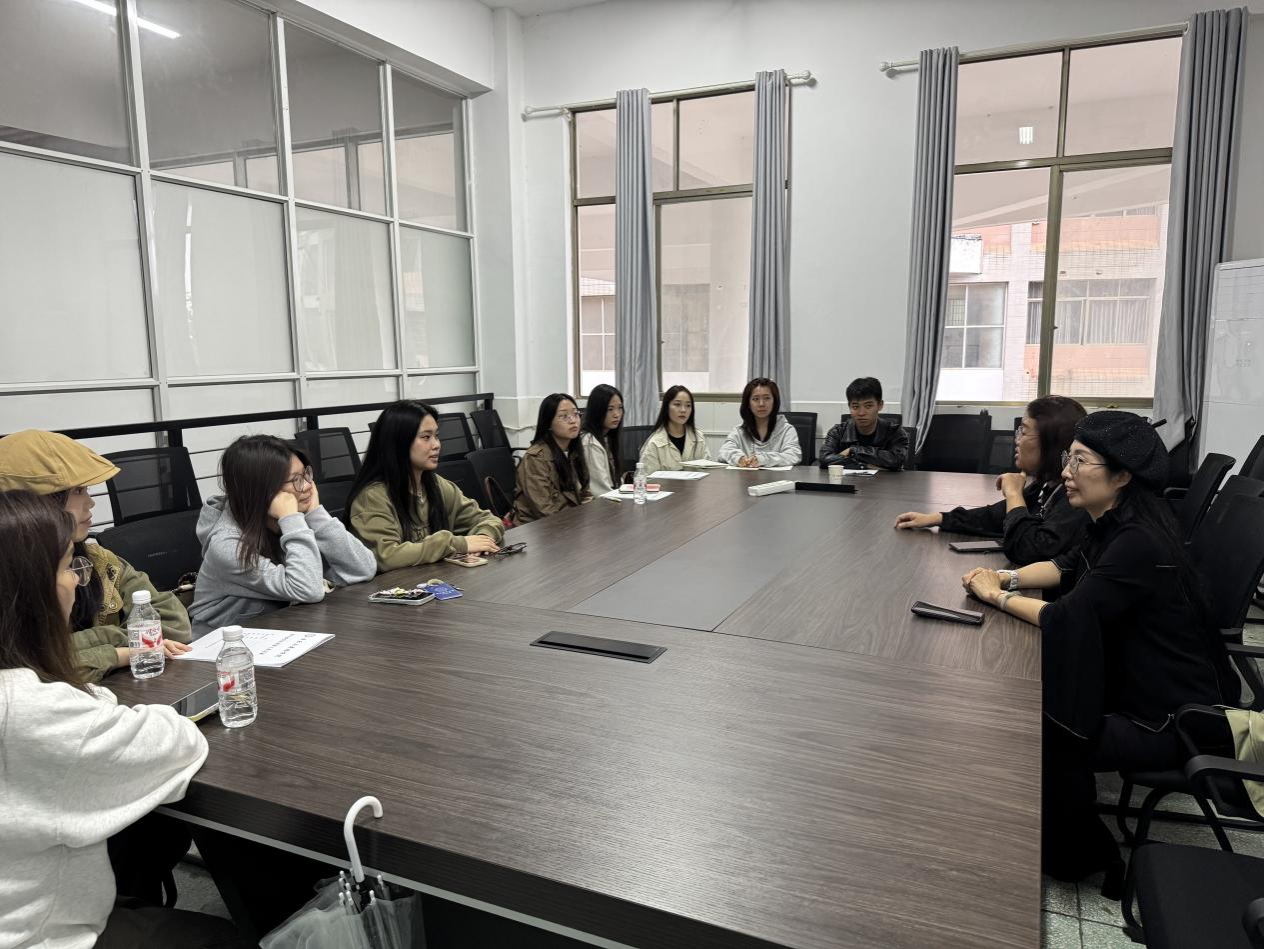 随后,公司经理曹蕙姿带领研究生与邱小燕老师前往研讨室开展深入交流。研究生们结合自身学习进度、未来实习规划,提出教学实践中可能遇到的困惑,邱老师结合一线教学案例逐一耐心答疑。