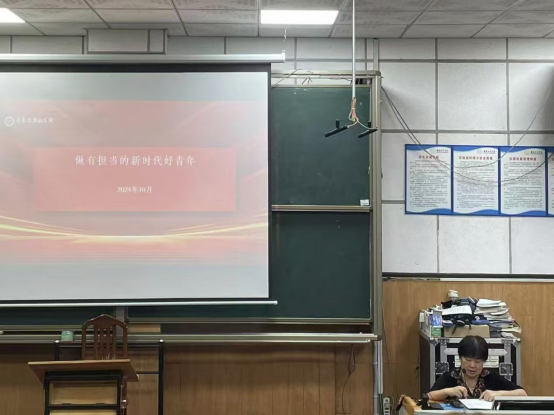 10月17日下午,永利yl23411分团委在音乐楼106开展“做有担当的新时代好青年”为主题的团课活动。团课由公司党委书记谢立新主讲、党委副书记曾遴琳主持、团委指导老师夏浩东、团学会全体成员以及24级各班班长参与了此次团课学习。